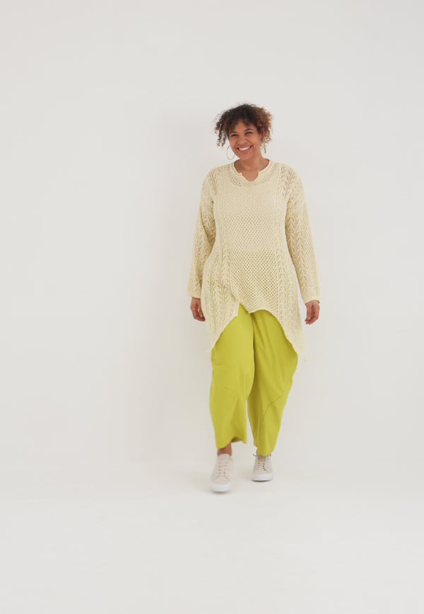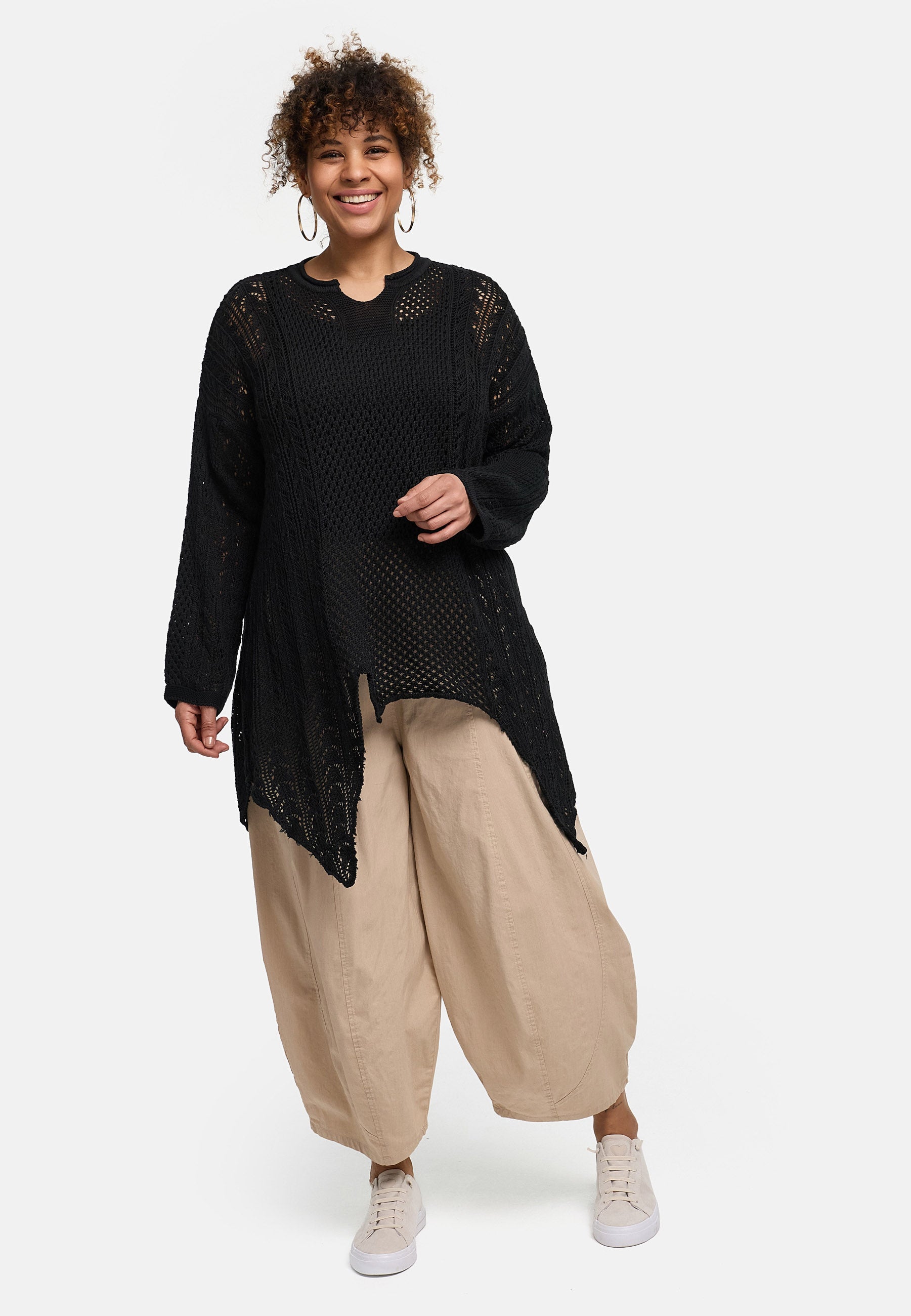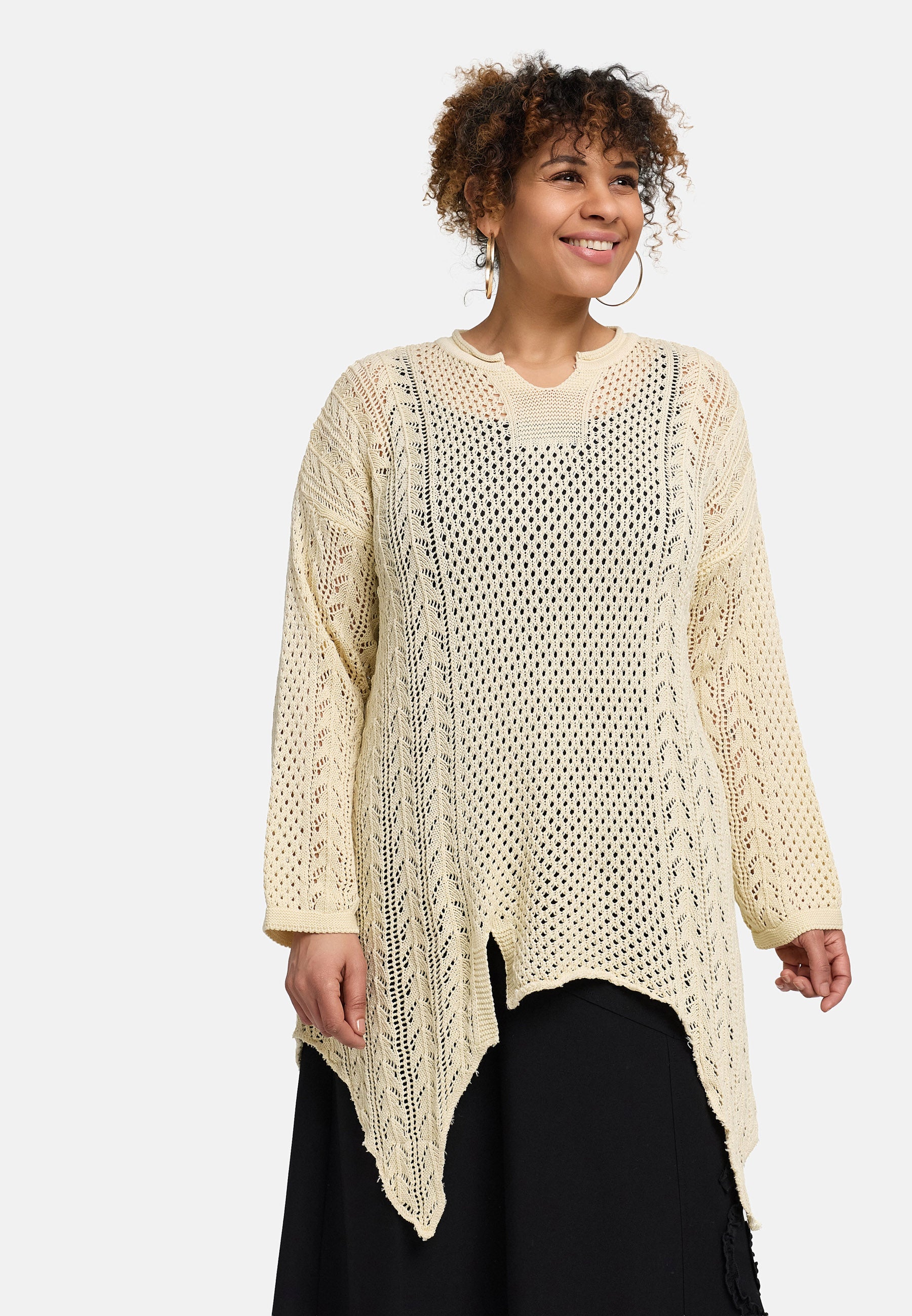 Koszulka dzianinowa 'Cotture' długa – krój w kształcie litery A w przewiewnej strukturze ażur